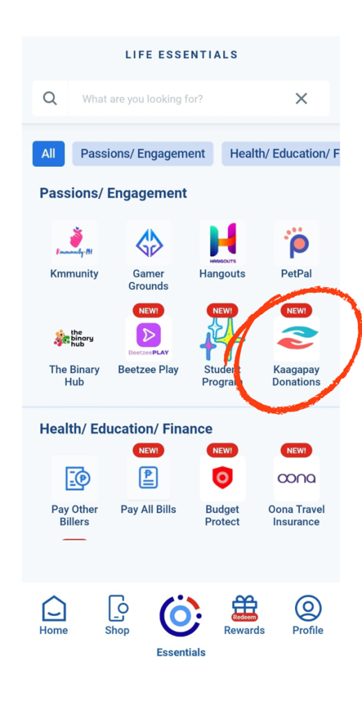 To access the Kaagapay Donations Portal, go through the GlobeOne app, click the Essentials button, then select Kaagapay Donations.